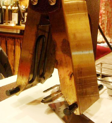 在瑞士卢塞恩这家非常有名的奶酪火锅店我们吃到一种比较奇特的奶酪美食Raclette,算是一次惊喜吧. 原本我们想点的是传统的奶酪火锅Fondue,结果误打误撞的点了这Raclette,还以为是和Fondue差不多的奶酪锅那,所以当服务员把下面这个武器端上桌时你能想象我们当时的震惊程度。